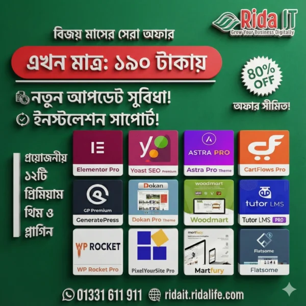 আপনার ওয়েবসাইটকে দ্রুত, সিকিউর ও হাই-কনভার্টিং করতে পাচ্ছেন জনপ্রিয় ও বিশ্বস্ত প্রিমিয়াম থিম ও প্লাগিনসমূহ—